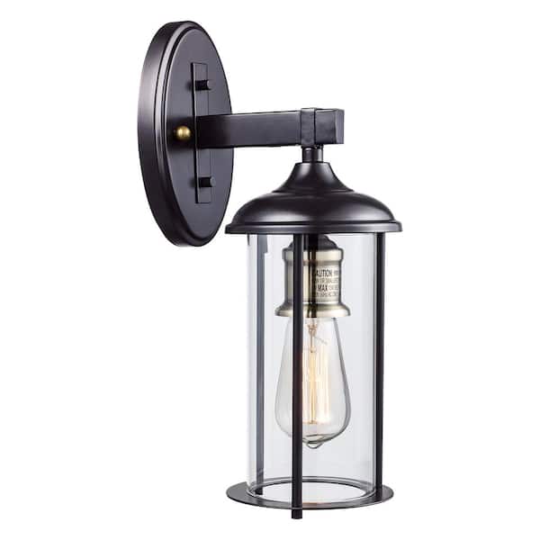 Blues 15.5 in. 1-Light Oil Rubbed Bronze and Antique Gold Outdoor Wall Light Fixture with Clear Glass
