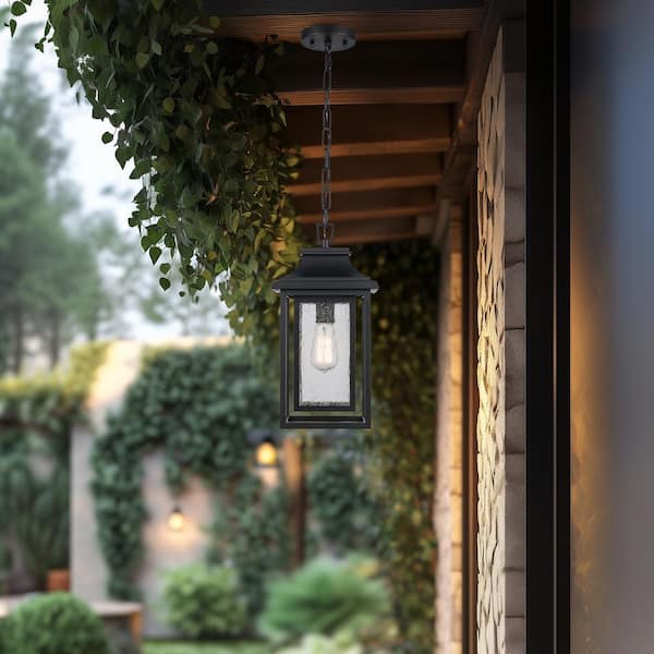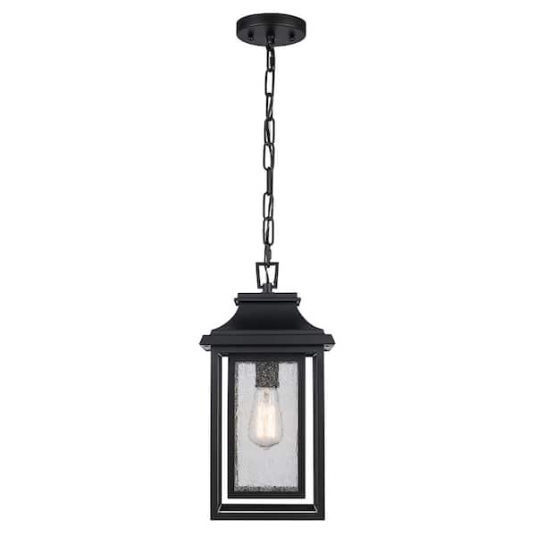 Bosque 16.5 in. 1-Light Black Outdoor Pendant Light Fixture with Clear Seeded Glass