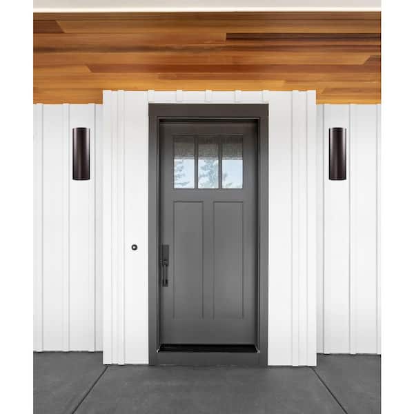 Cali 2-Light Large Bronze Cylinder Outdoor Wall Light Fixture with Clear Glass