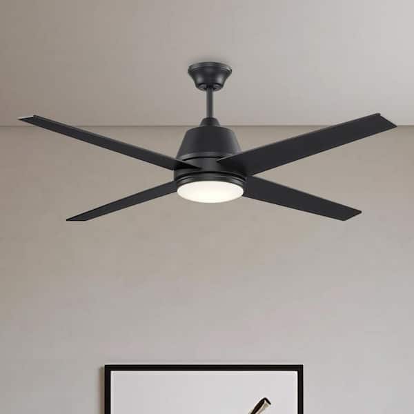 Cappleman 52 in. Indoor Black Integrated LED Modern Ceiling Fan with Light, Wall Control Switch, and 4 Blades