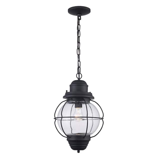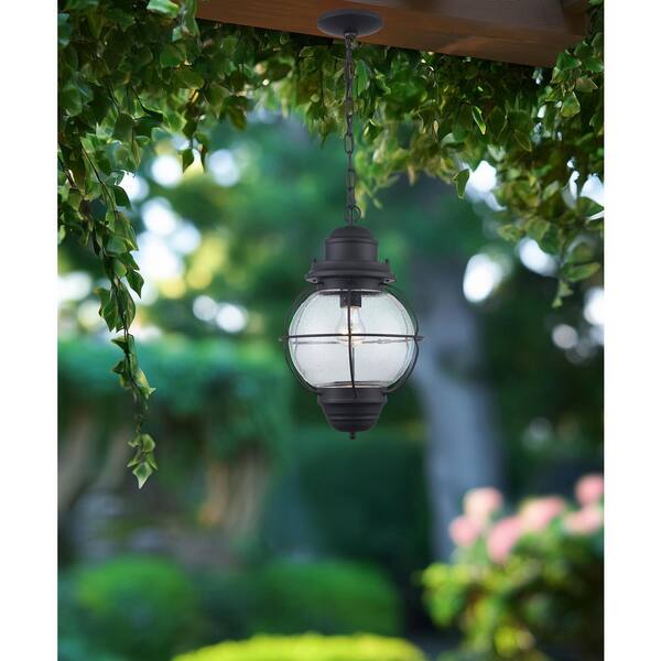 Catalina 10 in. 1-Light Black Outdoor Pendant Light with Seeded Glass