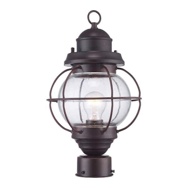 Catalina 15 in. 1-Light Rust Outdoor Lamp Post Light Fixture with Seeded Glass