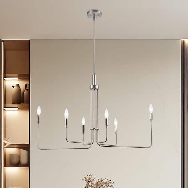 Charlotte 6-Light Brushed Nickel Candle Chandelier Light Fixture