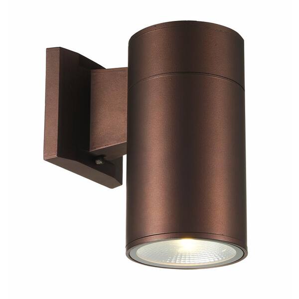 Compact 8 in. Bronze Integrated LED Cylinder Outdoor Wall Light Fixture with Clear Glass