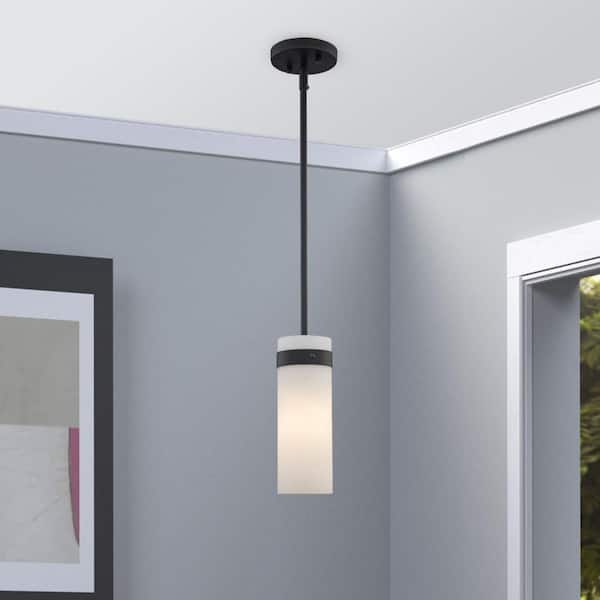 Crosby 1-Light Black Mini Pendant Light Fixture with Frosted Glass Shade