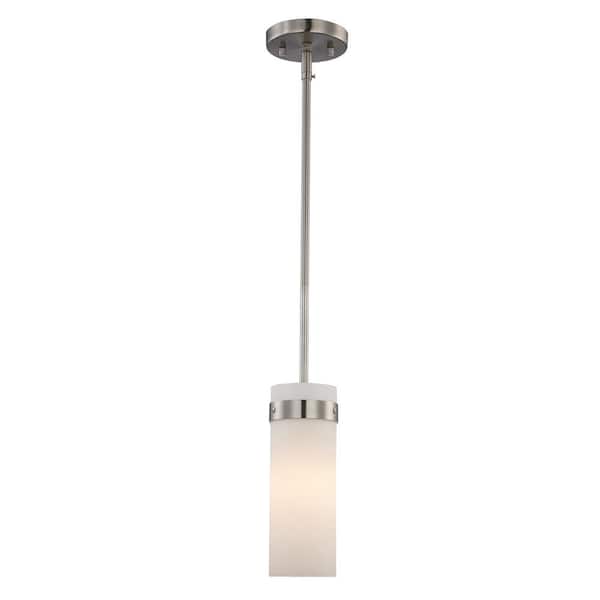 Crosby 1-Light Brushed Nickel Mini Pendant Light Fixture with Frosted Glass Shade
