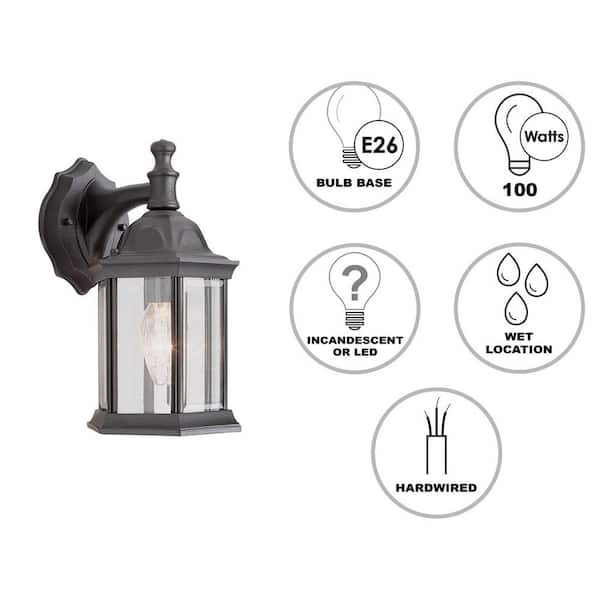 Cumberland 1-Light Black Outdoor Wall Light Fixture with Clear Glass