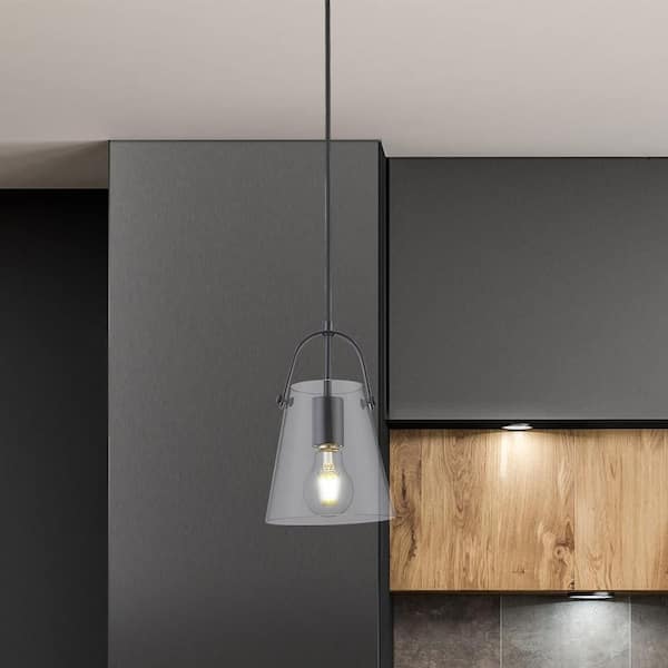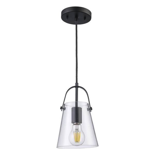 Curry 6 in. 1-Light Black Mini Pendant Light Fixture with Clear Glass Shade