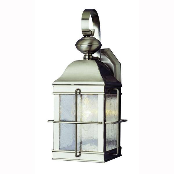 Diego 1-Light Brushed Nickel Outdoor Wall Lantern Sconce with Seeded Glass