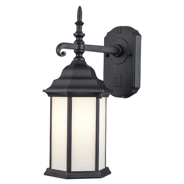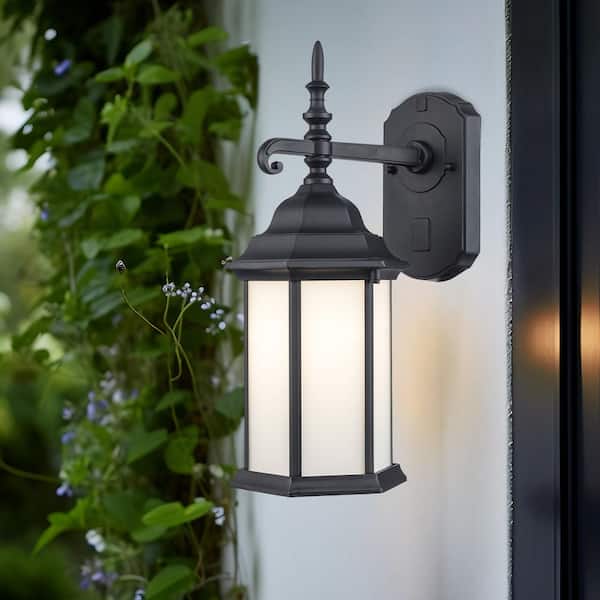 Eldlight 15 in. 1-Light Black Outdoor Hardwired Wall Lantern Sconce with No Bulbs Included and Frosted Glass