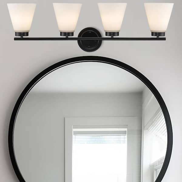 Fifer 31.75 in. 4-Light Black Bathroom Vanity Light Fixture with Frosted Glass Shades