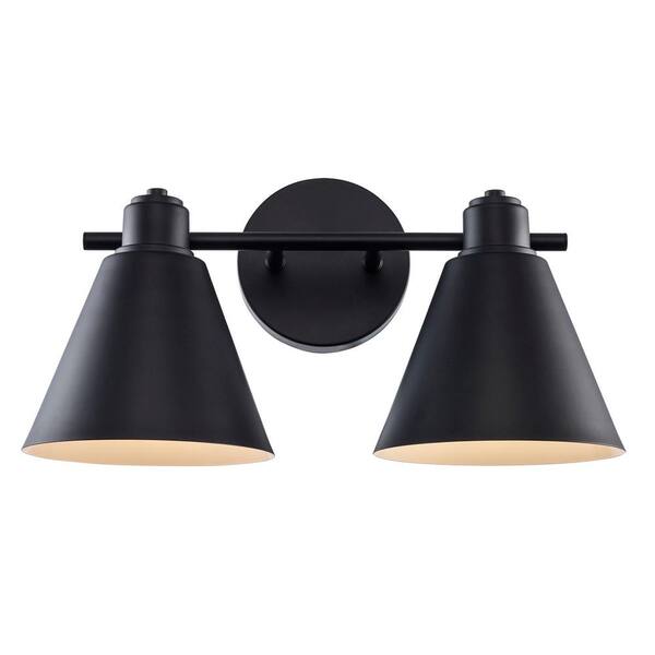 Forge 15.5 in. 2-Light Black Bathroom Vanity Light Fixture with Metal Cone Shades