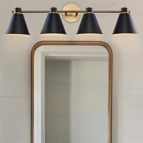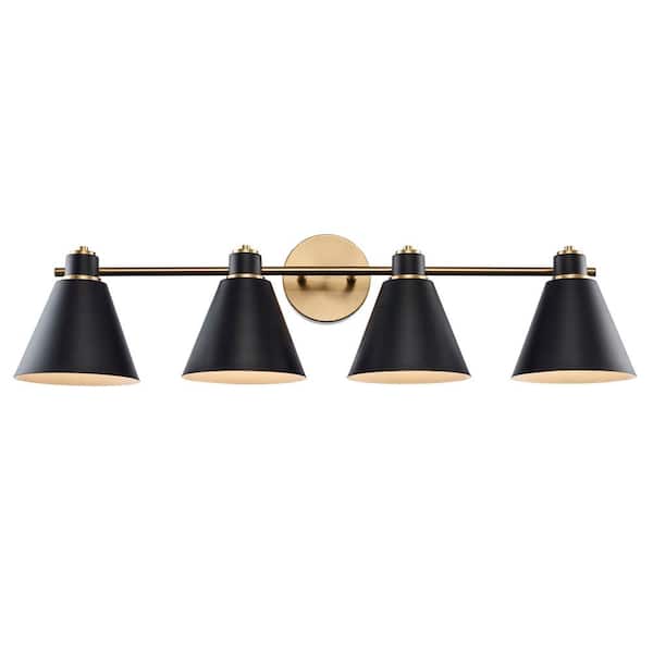 Forge 31.75 in. 4-Light Black and Gold Bathroom Vanity Light Fixture with Metal Cone Shades
