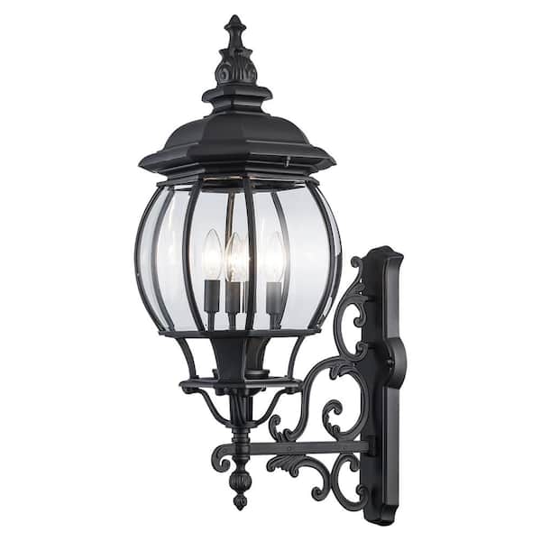 Francisco 29.5 in. 4-Light Black Coach Outdoor Wall Light Fixture with Clear Glass