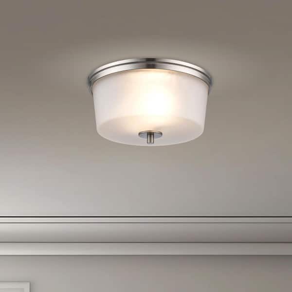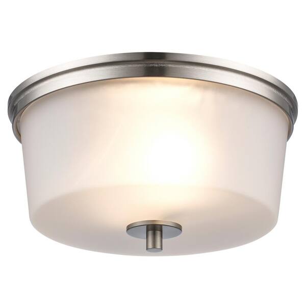 Fusion 14 in. 2-Light Brushed Nickel Flush Mount Ceiling Light Fixture with Frosted Glass Shade