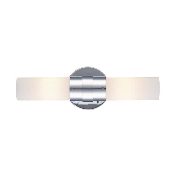 Fusion 15.5 in. 2-Light Polished Chrome Linear Bathroom Vanity Light Fixture with Frosted Glass Shade