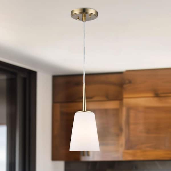 Horizon 1-Light Gold Hanging Mini Pendant Light Fixture with Frosted Glass Shade