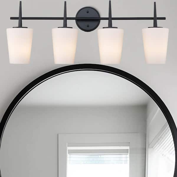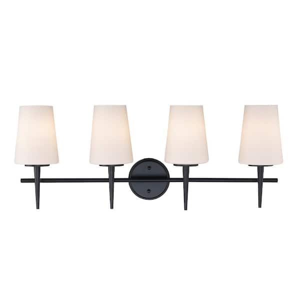 Horizon 30.5 in. 4-Light Black Bathroom Vanity Light Fixture with Frosted Glass Shades