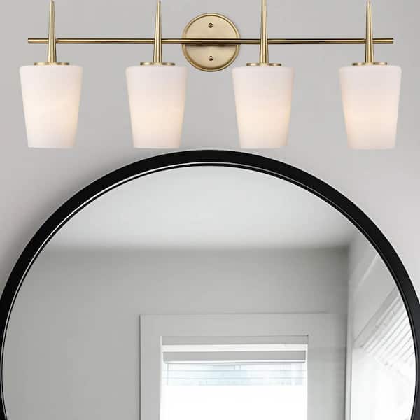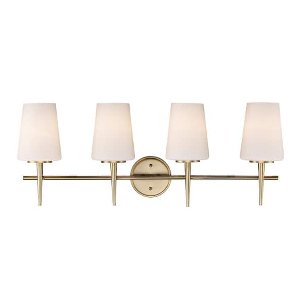 Horizon 30.5 in. 4-Light Gold Bathroom Vanity Light Fixture with Frosted Glass Shades
