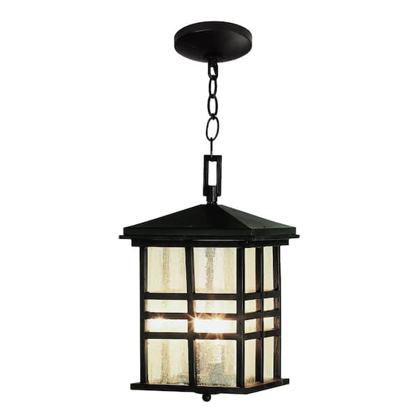 Huntington 2-Light Black Hanging Outdoor Pendant Light Fixture with Seeded Glass