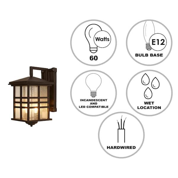 Huntington 2-Light Weathered Bronze Outdoor Wall Light Fixture with Seeded Glass