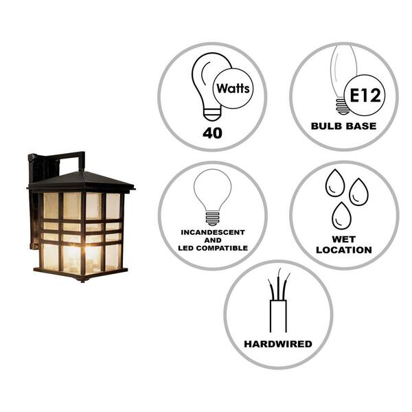 Huntington 3-Light Black Outdoor Wall Light Fixture with Seeded Glass