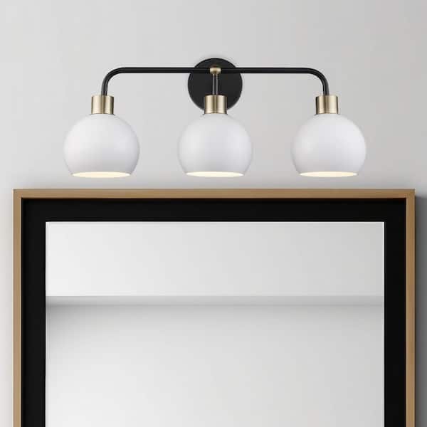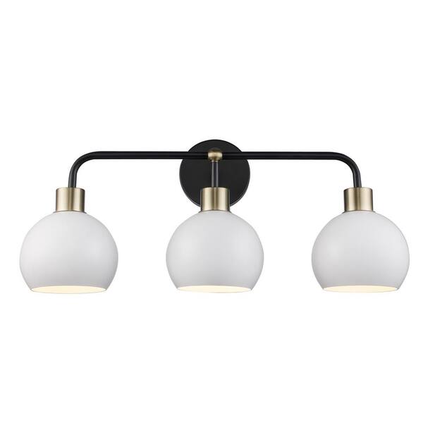 Indigo 23 in. 3-Light Black and White Bathroom Vanity Light Fixture with Metal Shades