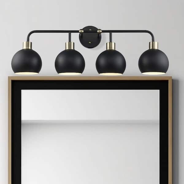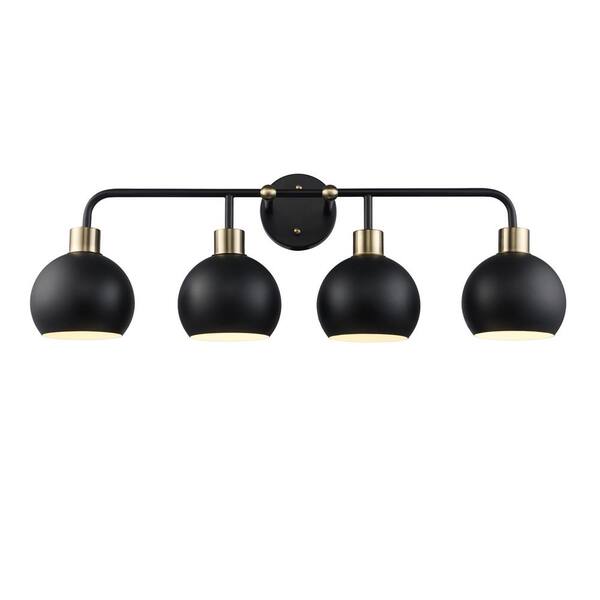 Indigo 30 in. 4-Light Black and Gold Bathroom Vanity Light Fixture with Metal Shades