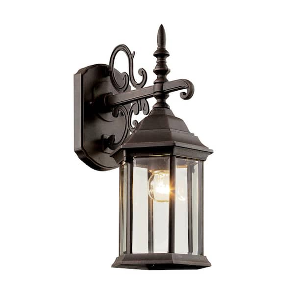 Josephine 15.5 in. 1-Light Rust Outdoor Wall Light Fixture with Clear Glass