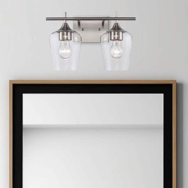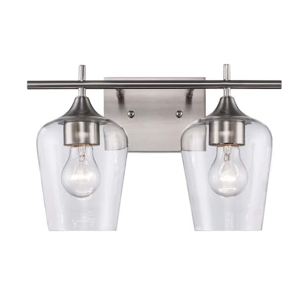 Kieran 13.75 in. 2-Light Brushed Nickel Bathroom Vanity Light Fixture with Clear Glass Shades