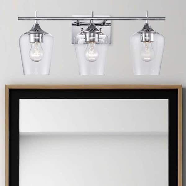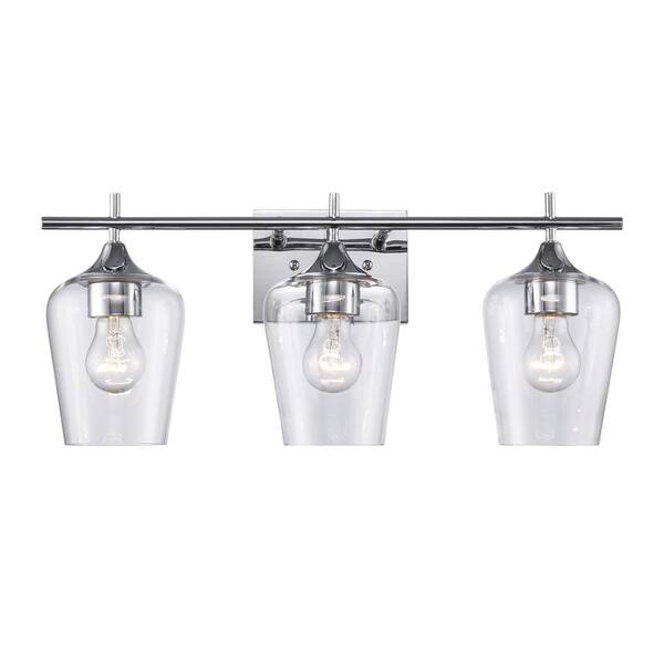 Kieran 21 in. 3-Light Polished Chrome Bathroom Vanity Light Fixture with Clear Glass Shades