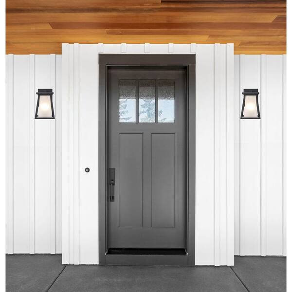 Kingsbury 8.5 in. 1-Light Black Outdoor Wall Light Fixture with Frosted Glass