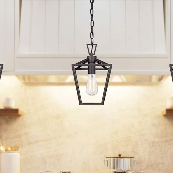 Lacey 1-Light Oil Rubbed Bronze Farmhouse Mini Pendant Light Fixture with Caged Metal Shade