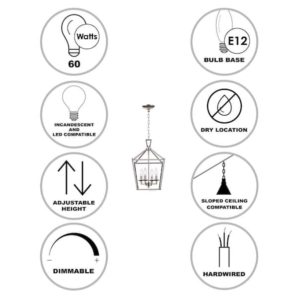 • Uses (4) 60W E12 incandescent or LED light bulbs, not included