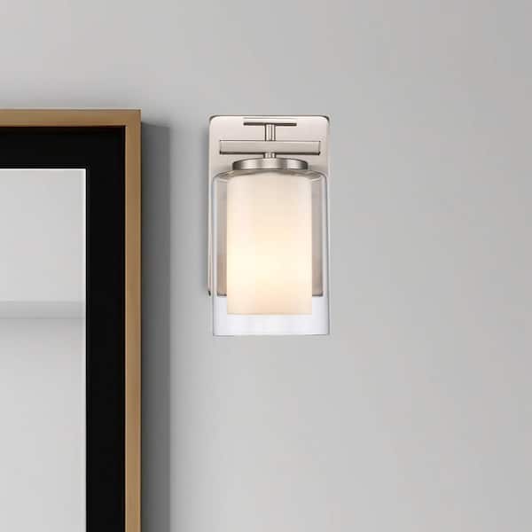 Lisbon 1-Light Brushed Nickel Wall Sconce Light Fixture with Clear Glass Outer and Opal Glass Inner Shade