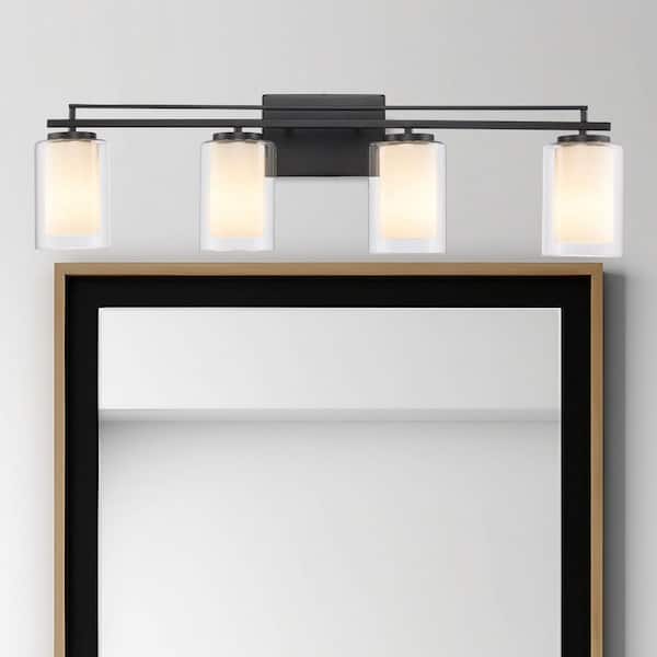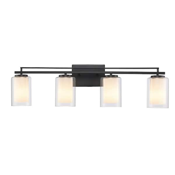 Lisbon 32 in. 4-Light Black Bathroom Vanity Light Fixture with Clear Glass Outer and Opal Glass Inner Shades