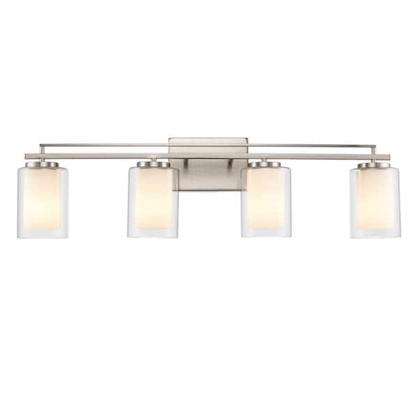 Lisbon 32 in. 4-Light Brushed Nickel Bathroom Vanity Light Fixture with Clear Glass Outer and Opal Glass Inner Shades