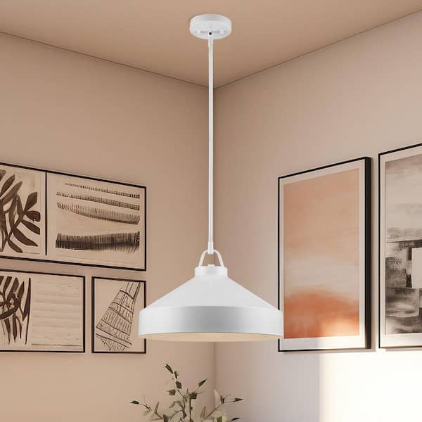 Lowen 15.75 in. 1-Light White Pendant Light Fixture with White Metal Dome Shade