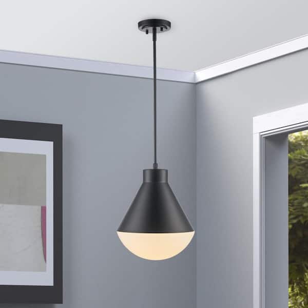 Ludlow 1-Light Black Hanging Pendant Light Fixture with White Opal Glass Shade