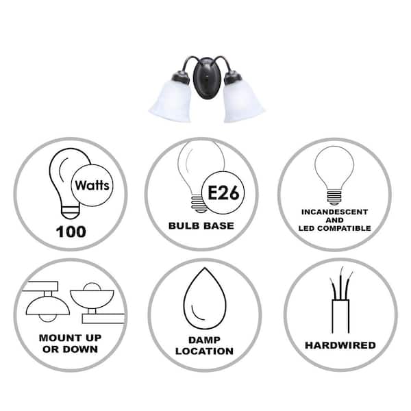 • Uses (2) 100W E26 incandescent or LED light bulbs, not included