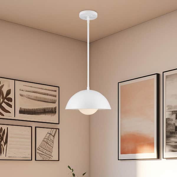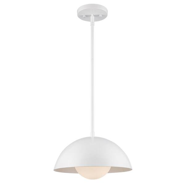 Maureen 12 in. 1-Light White Pendant Light Fixture with Metal Dome and White Opal Glass Shade
