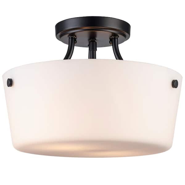 Mod Pod 13 in. 2-Light Black Semi-Flush Mount Ceiling Light with Frosted Glass Shade