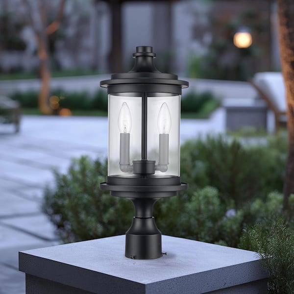 Path 18.375 in. 2-Light Black Metal Hardwired Outdoor Weather Resistant Post Light Fixture with No Bulbs Included