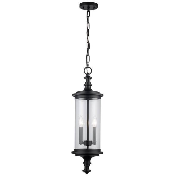 Path 26.5 in. 2-Light Black Outdoor Pendant Light Fixture with Clear Glass