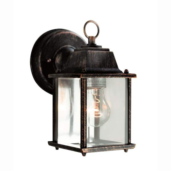 Patrician 8 in. Black Copper Outdoor Hardwired Wall Lantern Sconce with No Bulbs Included