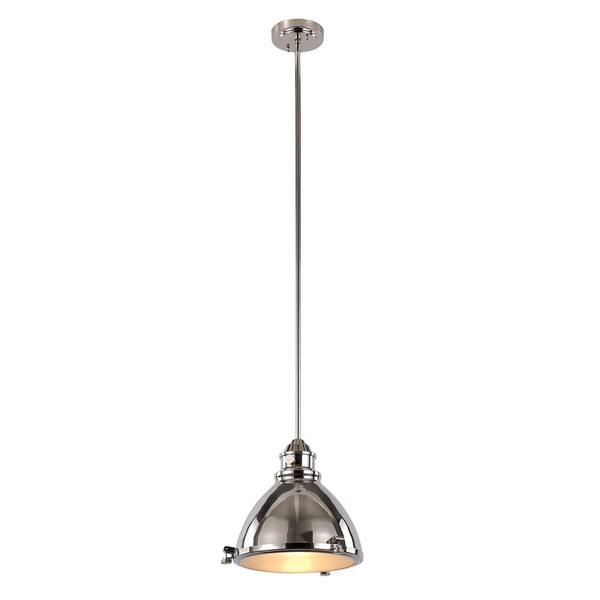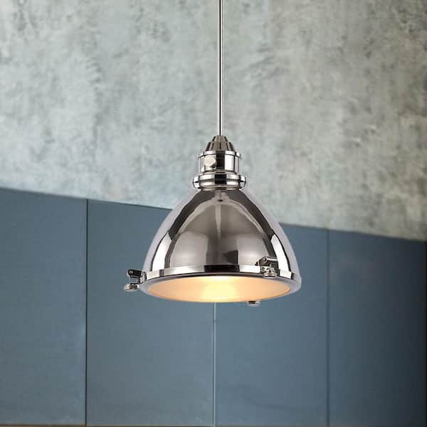 Performance 13 in. 1-Light Polished Nickel Pendant Light Fixture with Metal Shade