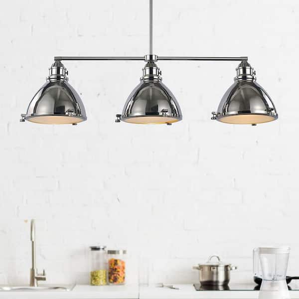 Performance 3-Light Polished Nickel Kitchen Island Pendant Light Fixture with Metal Shades