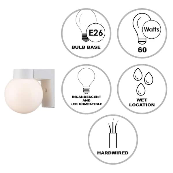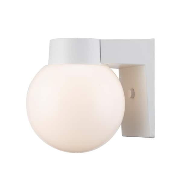Pershing 1-Light White Outdoor Wall Light Fixture with Opal Glass Globe Shade