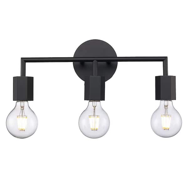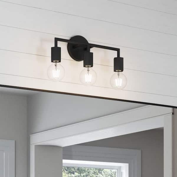 Placerville 16 in. 3-Light Black Bathroom Vanity Light Fixture with Geometric Socket