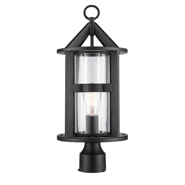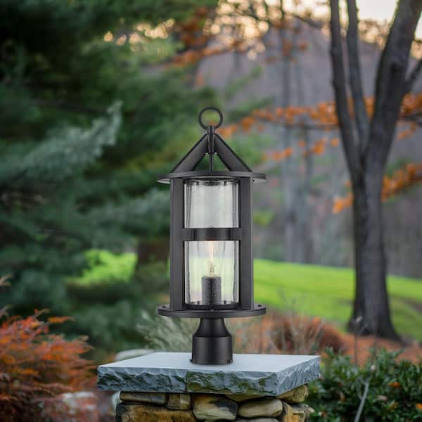 Prado 19.75 in. 1-Light Black Metal Hardwired Outdoor Weather Resistant Post Light Fixture with No Bulbs Included
